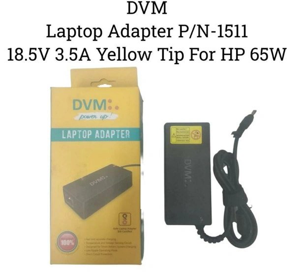 DVM Laptop Adapter P/N-1511 18.5V 3.5A Yellow Tip For HP 65W