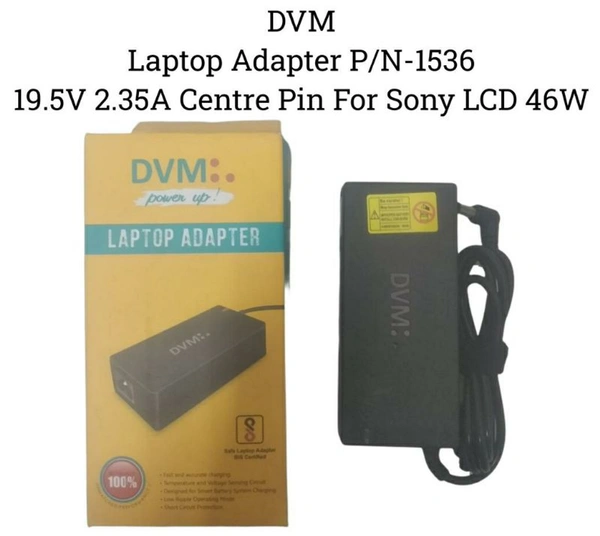 DVM Laptop Adapter P/N-1536 19.5V 2.35A Centre Pin For SONY LCD 46W