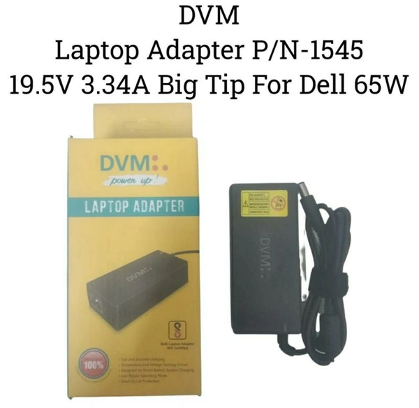 DVM Laptop Adapter P/N-1545 19.5V 3.34A Big Tip For Dell 65W