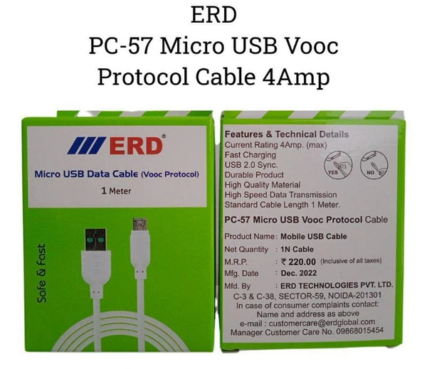 ERD MICRO USB VOOC CABLE 4AMP PC-57 pack of 10