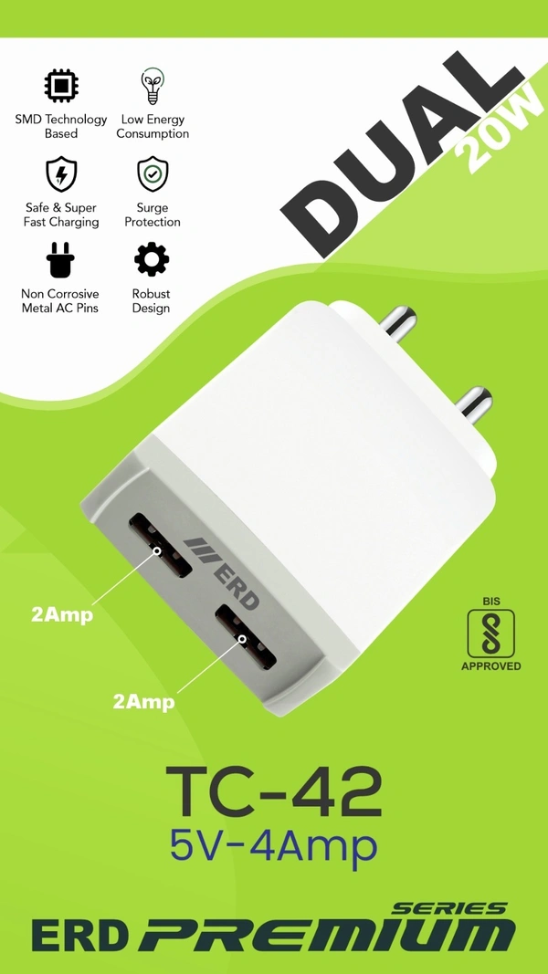 ERD TC-42 5V-4AMP DUAL USB-A CHARGER PACK 0F 10