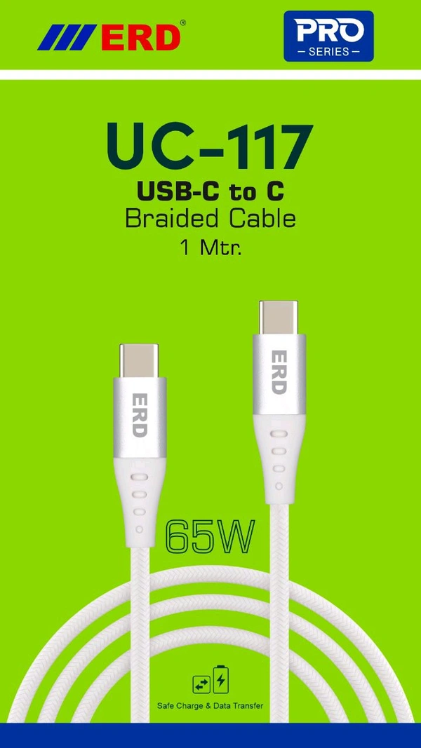 UC 117 USB C TO C BRAIDED CABLE 65 WATT PACK OF 10