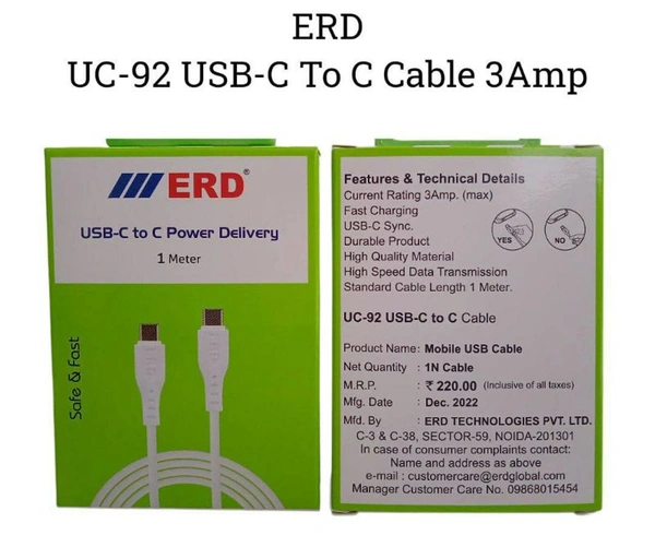 ERD UC-211(UC-92) Type-C To Type-C PD Fast Cable PACK of 10
