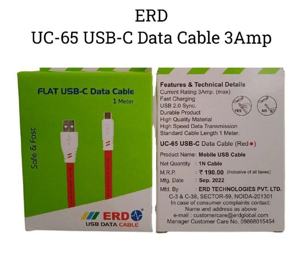 ERD UC-65 TYPE C CABLE 3 AMP PACK OF 10