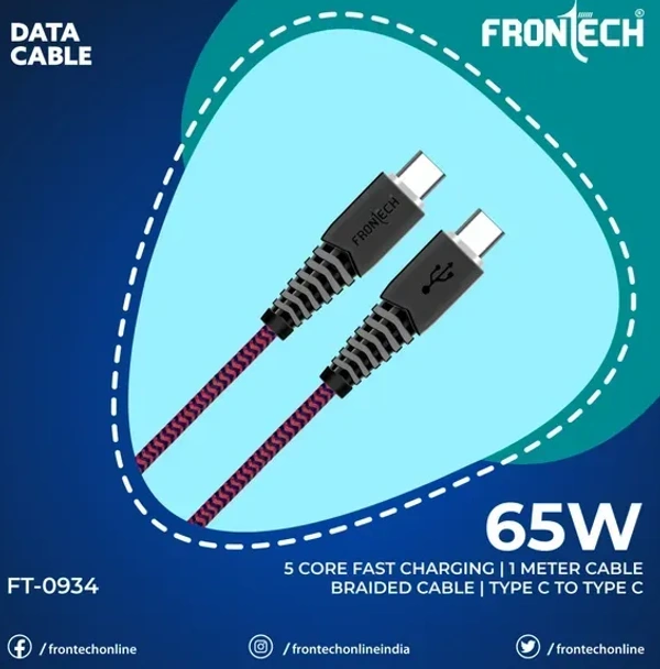 0934- FRONTECHUSB BRAIDED CABLE C TO C 65 WATT 5...