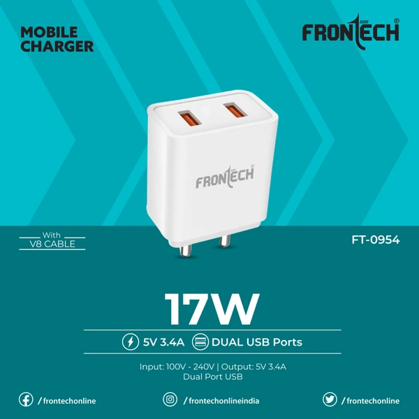 FRONTECH 0954W- MOBILE CHARGER 3.4 AMP DUAL WITH V8 CABLE