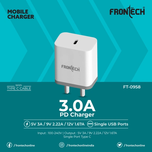 FRONTECH 0958- MOBILE 20W PD CHARGER WITH 5 CORE CABLE