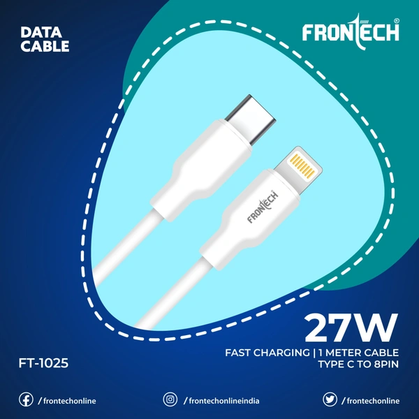 1025- FRONTECH USB PVC CABLE TYPE C to 8 PIN 27W