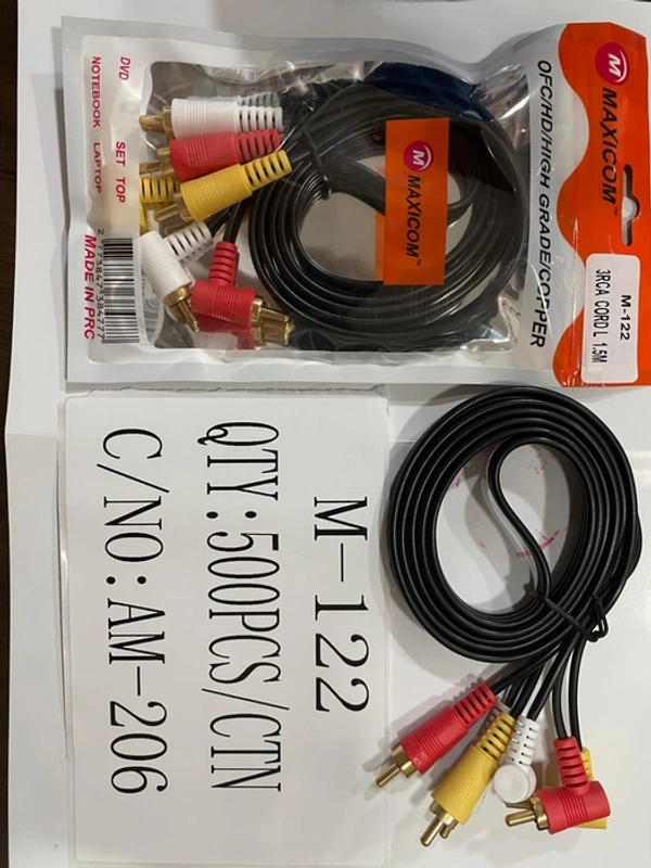Maxicom 3RCA to 3RCA Cable Black 1.5m L Shaped Cable PACK OF 10