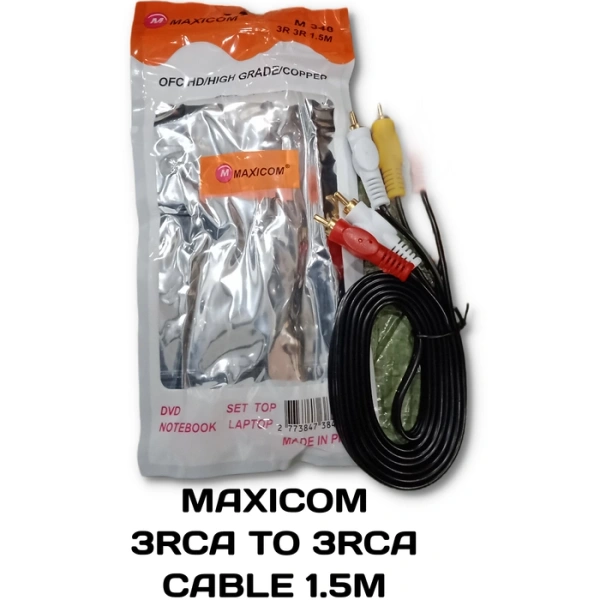 Maxicom 3RCA to 3RCA Cable Black 1.5m PACK OF 10