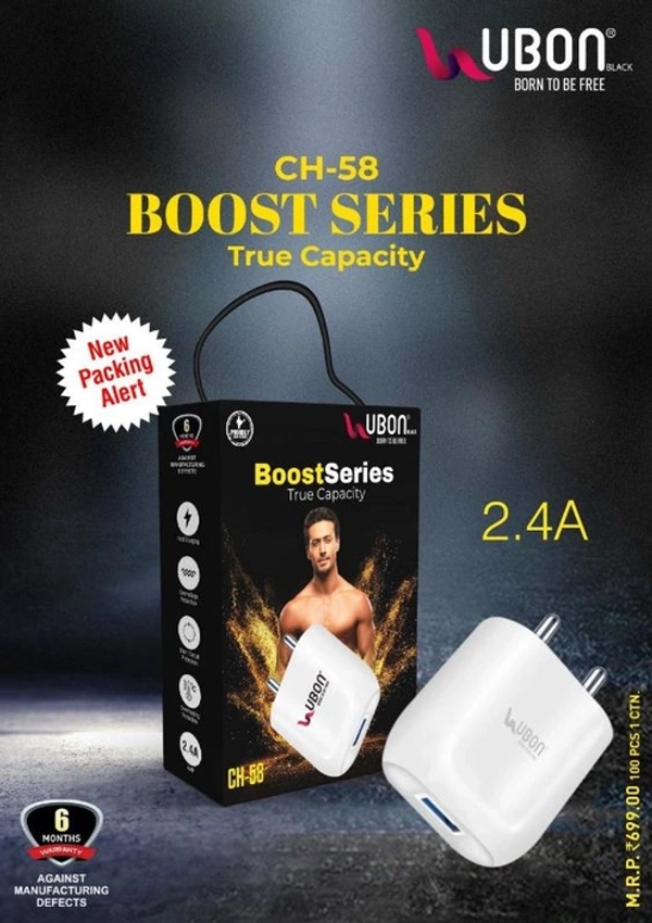 UBON 2.4 AMP CHARGER CH-58 WITH 6 MONTHS WARRANTY pack of 10pcs