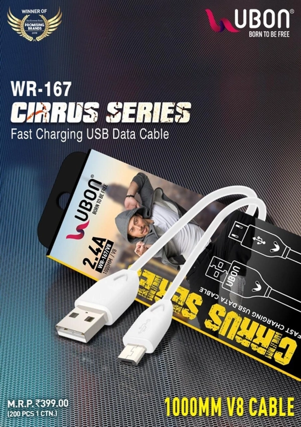 UBON V8 Cable WR-167 CIRRUS FAST CHARGING 1Metre P...